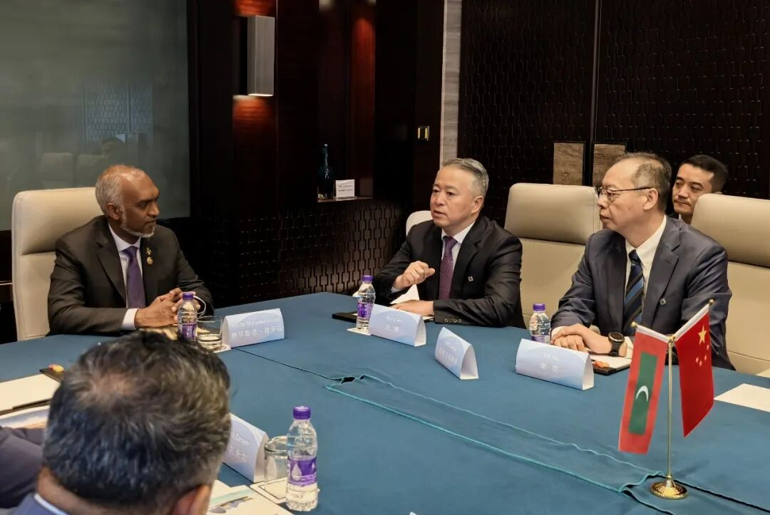 王博董事長代表國機工程集團對穆伊茲總統閣下在上海合作組織天津峰會及閱兵儀式期間撥冗接見表示感謝,并回顧了在總統閣下的支持下,國機工程集團及其成員企業在馬爾代夫房建、電力、清潔能源等領域的項目中取得的一系列成果。王博表示,公司將依托國機集團在工業領域覆蓋面廣、研發實力強、國際化水平高、產業鏈完備等綜合優勢,深度對接馬爾代夫“2040 愿景”戰略,落實好兩國元首會晤達成的全面戰略合作共識,推動高質量共建“一帶一路”走深走實,為馬爾代夫經濟、社會和環境的可持續發展貢獻國機力量。