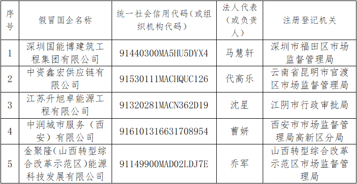 關于假冒國企信息公告